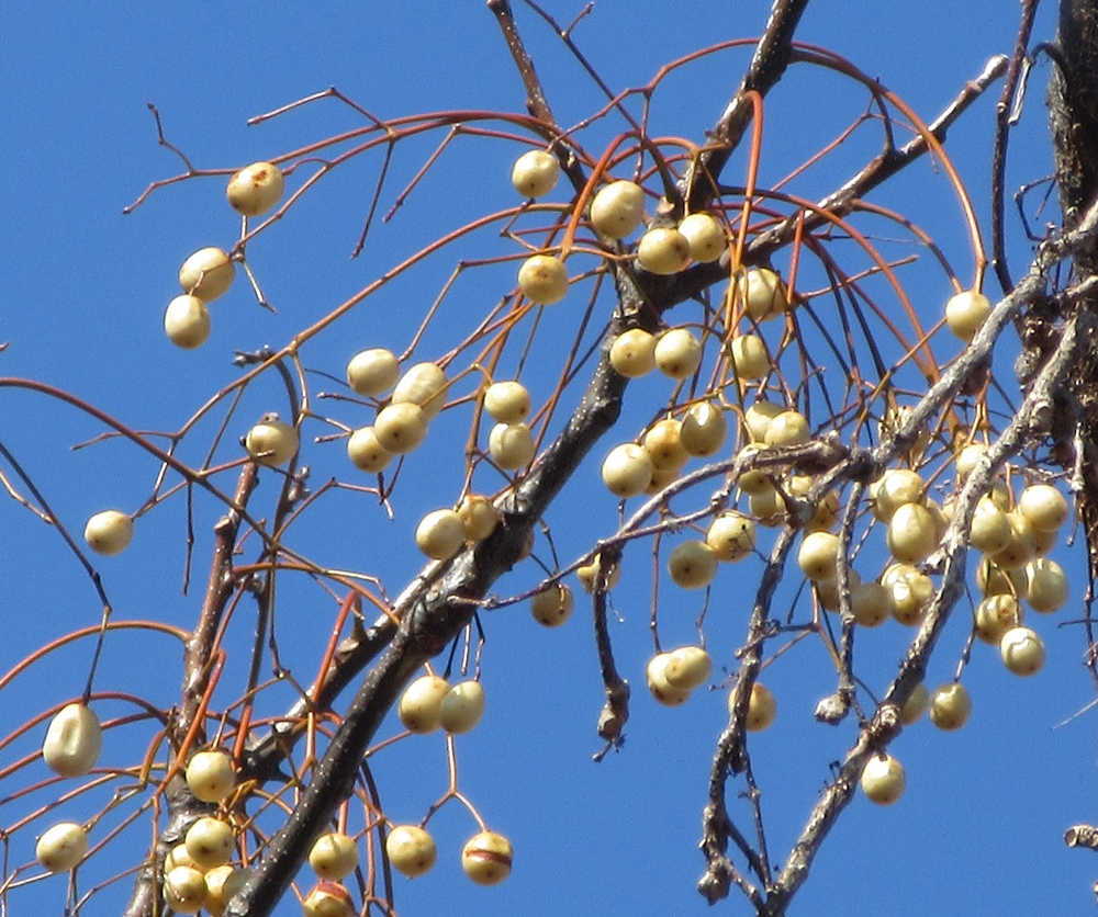 2024-02-05 センダン、梅、ミモザ 花・木・植物 蝋梅をきっかけに楽しくおしゃべりした後、そのお宅の筋向いの空き地に白い実が生っている木があり植物に詳しい姉も知らないとのことGoogle検索で栴檀(せんだん)と判明 「栴檀は双葉より芳し」諺は知っていましたが見るのは初めて… そのまた筋向いの空き地には梅 そして、まだ蕾のミモザ カタバミとタンポポ